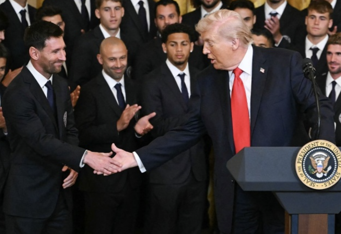 上赛季,梅西带领迈阿密国际获得队史首个联赛冠军。随后,他们按照惯例前往美国白宫,与特朗普会面。梅西也接受邀请,与全队一同前往。在白宫的东厅,特朗普发表讲话,欢迎了迈阿密国际全队的到来。