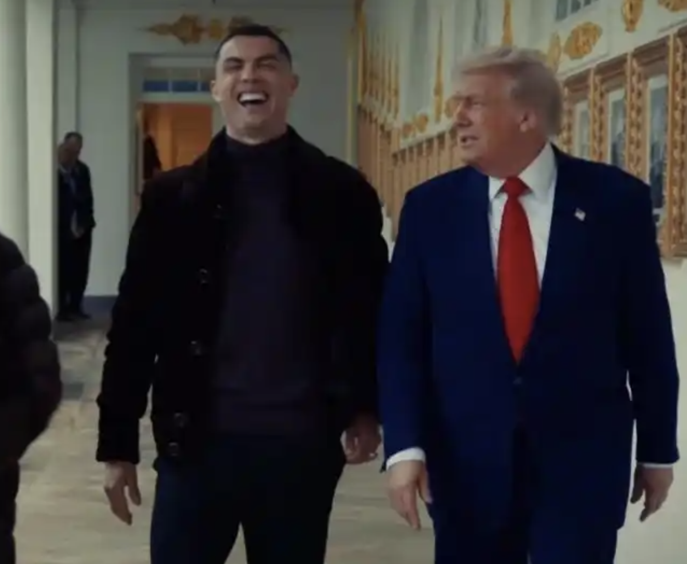 此前,C罗也曾造访白宫。特朗普当面夸赞C罗是历史最佳。近期,特朗普还公开招揽C罗来美国踢球:“C罗你是史上最佳,我们需要你来美国。”